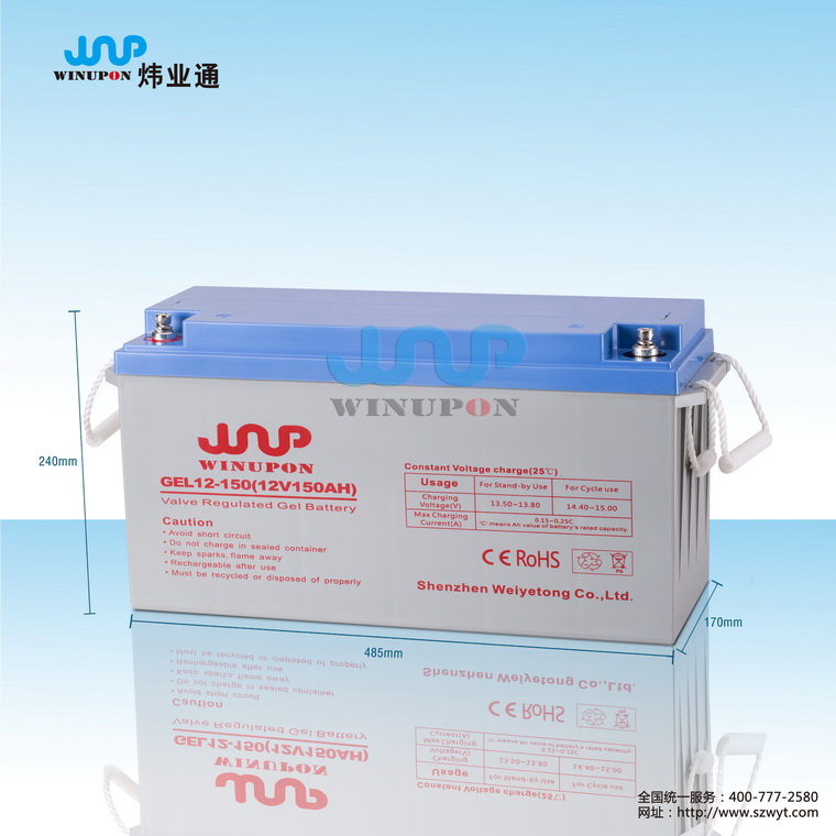 | 規格型號 | 12V150AH | 外形尺寸(±2mm) | 約重42.5KG | |||