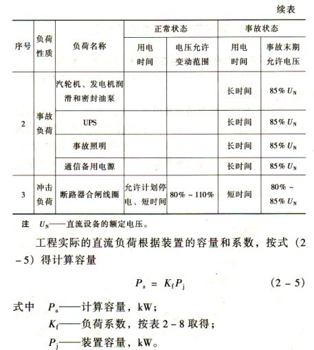 (1)事故初期的沖擊負(fù)荷。如備用電源斷路器采用電磁合閘線圈時(shí),應(yīng)按備用電源實(shí)際自投斷路器臺(tái)數(shù)計(jì)算,沖擊負(fù)荷系數(shù)取0.5。低電壓保護(hù)、母線保護(hù)、低頻減載等跳閘回路應(yīng)按實(shí)際數(shù)之和計(jì)算,沖擊負(fù)荷系數(shù)取0.6~0.8。